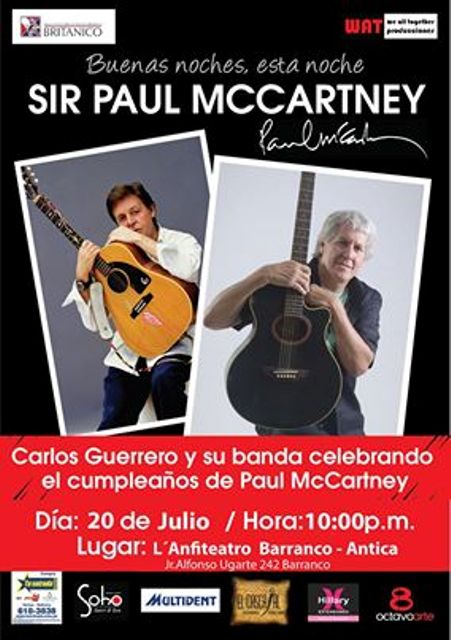 Carlos Guerrero celebrando el cumpleaños de Paul Mccartney en el Anfiteatro Barranco Antica el 20 de Julio a las 10: 00 Pm .