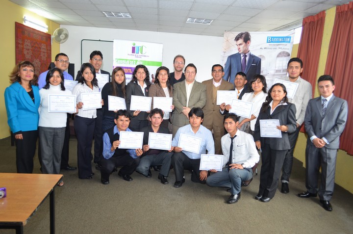 Se realizó la graduación de 44 nuevos sastres confeccionistas en el curso de sacos y pantalones , que por convenio de Barrington con ITC ,se llevó cabo los cursos de especialización en ITC, estuvierón en la ceremonia los Sres. Joaquin Herrera Director de ITC y Harold Salas Gerente de Ventas de Barrington y Ricardo López Vicente de Marketing de Barrington.