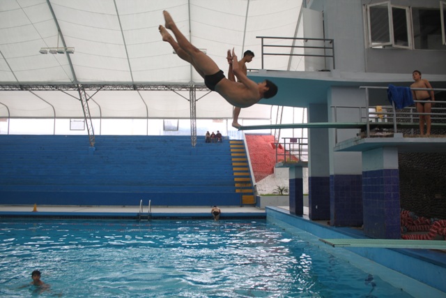 Con Saltos y piruetas, se viene realizando desde hoy con éxito en la piscina de saltos ornamentales del Campo de Marte, el I Campeonato de Clavados “José Zegarra 2013”.