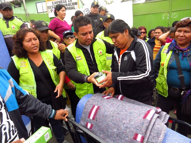 Los damnificados previamente empadronados fueron citados a la sede de la Empresa de Limpieza Pública del Callao, a una cuadra del lugar del siniestro, a fin de efectuar un reparto ordenado y sin contratiempos.