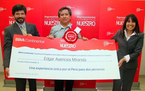 La Ministra de Comercio Exterior y Turismo, Magali Silva Velarde-Álvarez, premió a Édgar Asencios Miranda, como el primer ganador del concurso “Representantes de lo Nuestro”, el cual tiene la finalidad de difundir los destinos del país, las visitas internacionales y para promocionar la gastronomía y los productos bandera del Perú. Recordó que el portal del concurso es una plataforma interactiva donde los usuarios pueden participar subiendo videos y fotos de cualquiera de los innumerables atractivos del Perú, tales como destinos turísticos, platos de nuestra gastronomía, obras de arte o festividades.