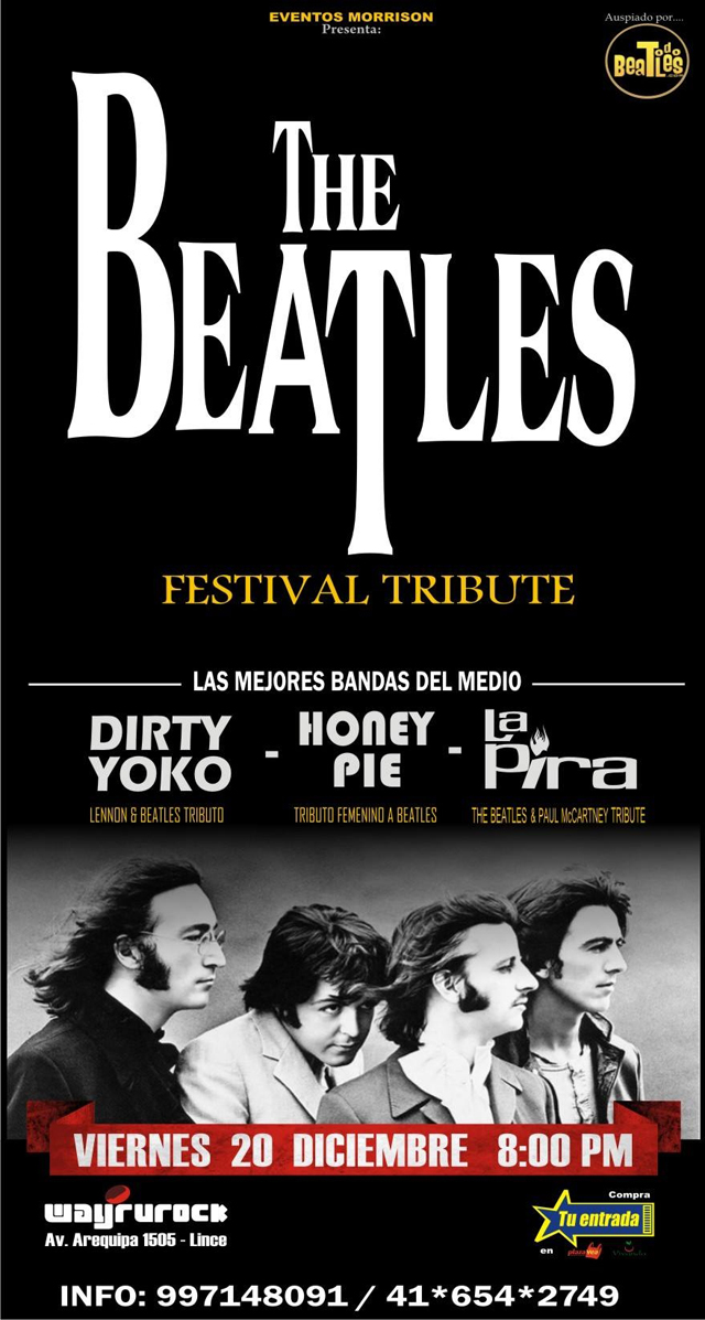 Celebrando a lo grande el mes más Beatlero; preparamos un festival con 3 de las mejores bandas del medio haciendo lo mejor de la discografía Beatles, las bandas a participar de este genial evento las conforman: