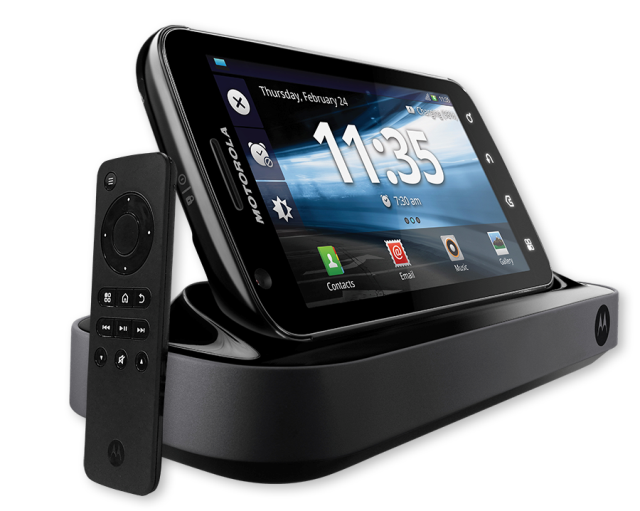 Motorola ATRIX MB861: Es un smartphone Android con procesador NVIDIA Tegra 2 de doble núcleo. Posee una pantalla qHD de 4 pulgadas, cámara de 5 megapixels con captura de video HD, Wi-Fi, GPS, 1GB de RAM y una enorme batería de 1930mAh. El Atrix corre Android 2.3.6 Froyo con la interfaz de usuario MotoBlur. El celular Motorola Atrix está categorizado como celular Multimedia, cuatribanda, 3G, Flash LED, GPS, Wi-Fi, Bluetooth, VIDEO HD, Puerto Mini HDMI, Reproductor MP3/MP4, memoria Interna de 16 GB y memoria hasta 32GB Micro SD. Adicionalmente de regalo viene una base multimedia con un puerto mini HDMI, para conexión con pantallas externas de alta definición, tres puertos USB para conexión de periféricos: Teclado, Mouse, Etc., un puerto de Salida de audio de 3.5mm, un control remoto y una batería adicional.