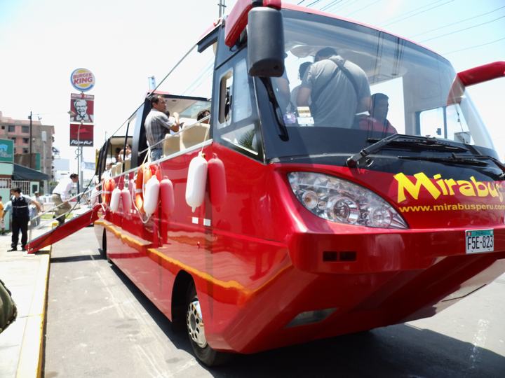 “En una hora y media se recorrerá el mar del Callao frente al muelle sur hasta acercarse a las islas San Lorenzo, e incluso hasta El Frontón, para acabar en La Punta”, explicó Reaño, quien agregó que se está a la espera de la construcción de una rampa en Chucuito, que le permitirá al peculiar bus ingresar al Océano Pacífico. “El bus contará con GPS y bolsas salvavidas”, puntualizó.