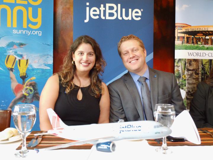 Fernando A. Harb, Vicepresidente de Ventas del Greater Fort Lauderdale; y Gíselle Cortes, Directora de Blue Cities de JetBlue, en el Almuerzo de Prensa donde dierón a conocer a Fort Lauderdale como destino de turismo y negocios para los peruanos.