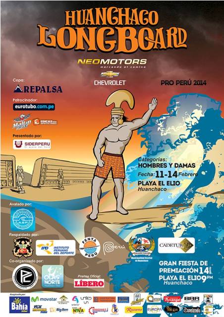 Huanchaco Longboard Pro Perú 2014 Copa Repalsa es presentado por Cemento Pacasmayo, Edicas y Eurotubo; patrocinado por Siderperú, anunciado por la Universidad y organizado por Olas Norte y Piccolo Surf Company.