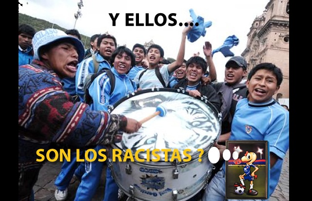 Como sabemos, Real Garcilaso logró vencer 2-1 al Cruzeiro en Huancayo, pero según los brasileños, en especial el jugador Tinga se quejó de Racismo por parte de unos Hinchas del Garcilaso. Vea el Meme que hace referencia a ello.