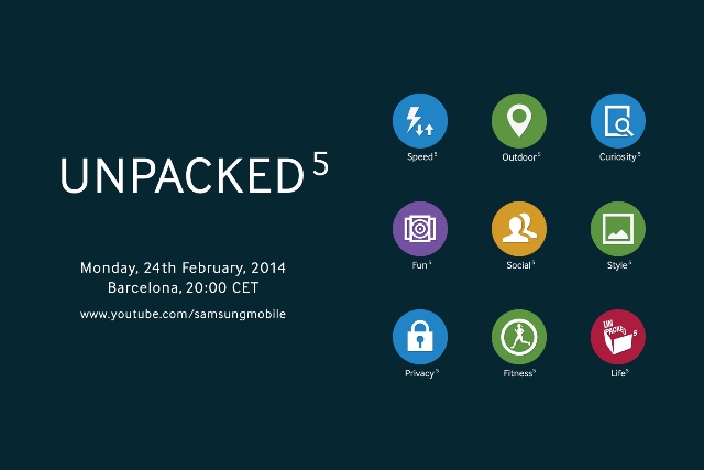 En marzo de 2013 la compañía presentó oficialmente Samsung Galaxy S4 y en septiembre de 2013 vimos la llegada de Galaxy Note 3. ¿Qué tendrá preparada la compañía para Unpacked 5? Por ahora sólo se conoce la fecha, lunes 24 de febrero desde Barcelona (durante MWC 2014) y que será un evento que se retransmitirá en directo a través de Internet.