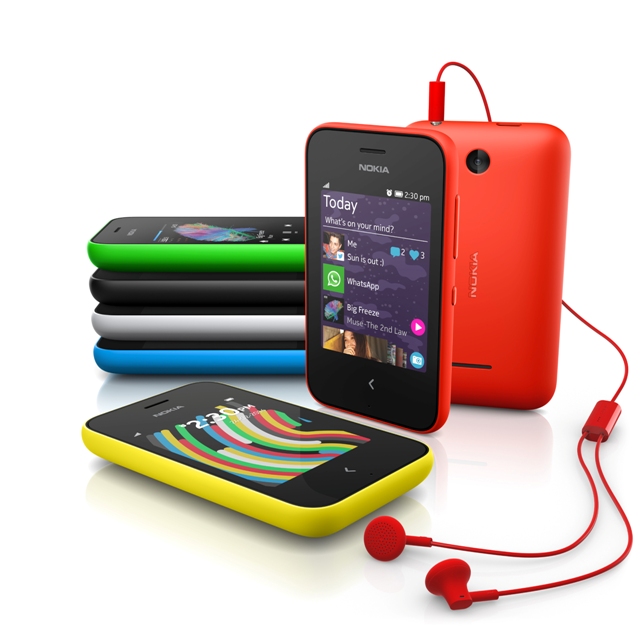Nokia también ha presentado dos terminales diseñados para quienes quieren disfrutar de Internet por primera vez. Dentro de la popular gama Asha, el Nokia Asha 230 es la forma ideal de introducirse en los móviles totalmente táctiles. Nokia Asha 230 incorpora todas las ventajas de la plataforma Asha, como Fastlane y acceso a aplicaciones sociales conocidas como Line, WeChat y WhatsApp. Con sólo deslizar el dedo hacia arriba por la pantalla, se activa su cámara, y un solo toque permite al usuario compartir imágenes en su red social favorita. Gracias una próxima actualización de software, el Nokia Asha 230 incluirá 7 GB de almacenamiento gratuito en la Nube con Microsoft OneDrive, así como la posibilidad de guardar automáticamente las fotografías en dicho espacio.