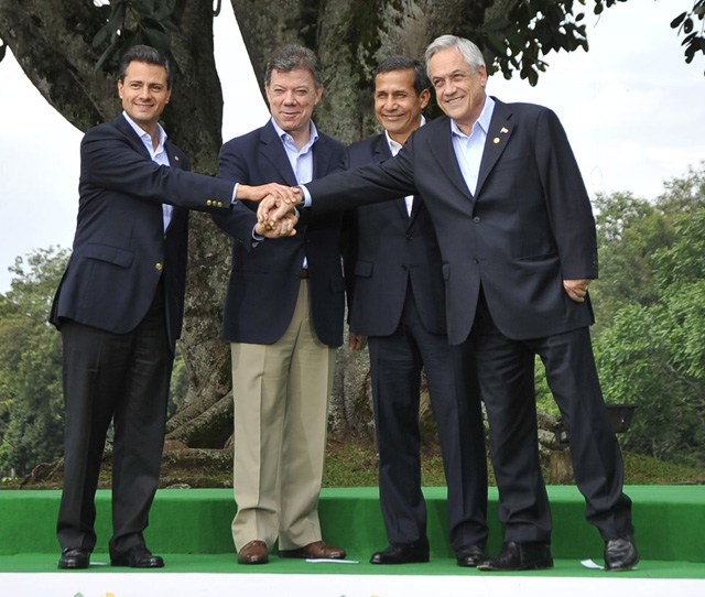 Esta Cumbre cuenta con la asistencia de los presidentes de Colombia, Juan Manuel Santos; de Perú, Ollanta Humala; de México, José Peña Nieto; y de Chile, Sebastián Piñera.
