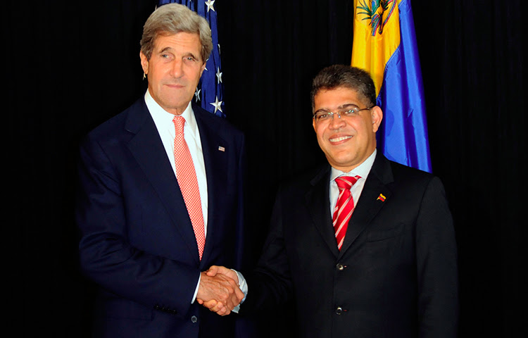 El iracundo canciller venezolano Elías Jaua responsabilizó al secretario de Estado de los Estados Unidos, John Kerry, de ser el «principal alentador de la violencia» en Venezuela y le llamó «asesino del pueblo venezolano». «No vamos a bajar el tono, lo denunciamos a usted como asesino del pueblo venezolano, señor Kerry, no le vamos a bajar el tono a ningún imperio hasta tanto ustedes no le ordenen a sus lacayos en Venezuela cesar la violencia contra el pueblo», dijo Jaua de forma encendida, en un acto de homenaje al fallecido expresidente Hugo Chávez.