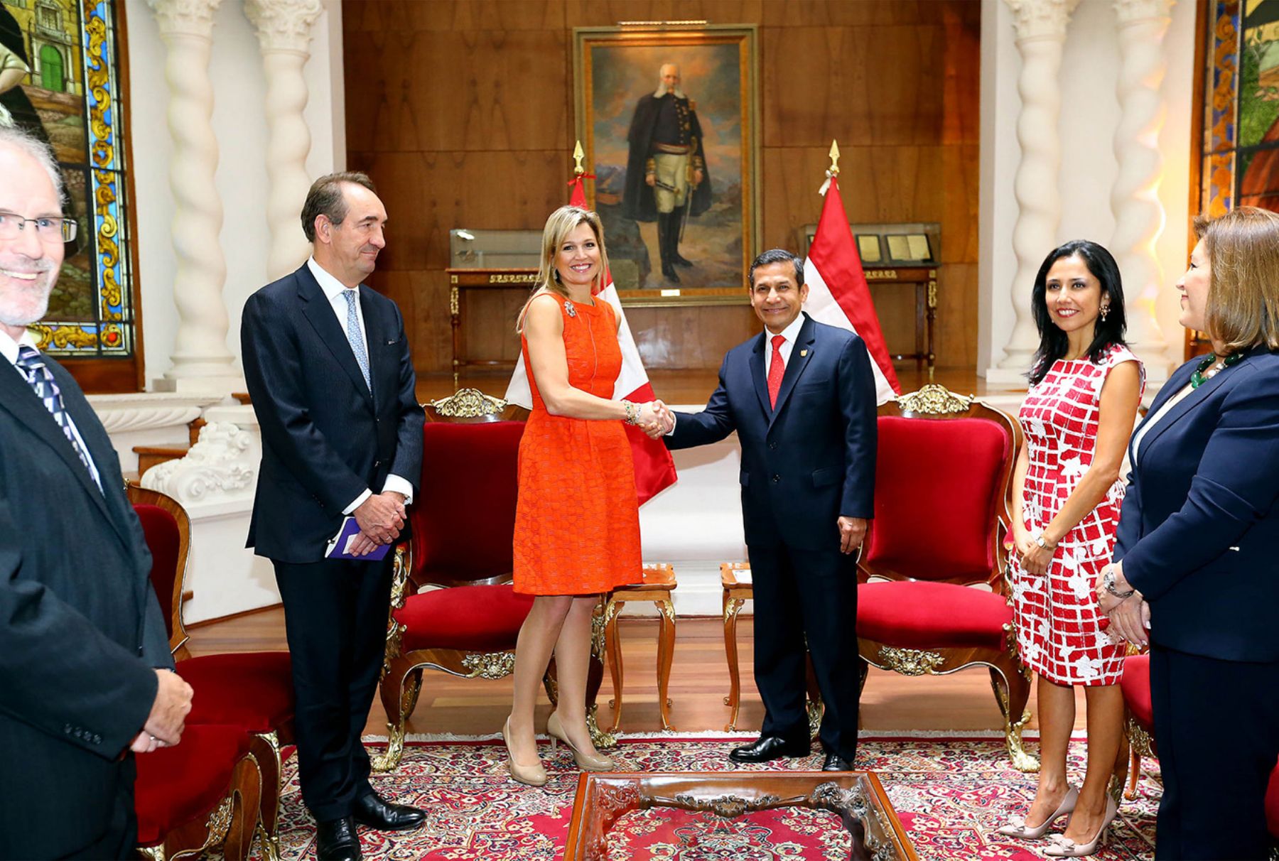 El Presidente Ollanta Humala Tasso recibió esta tarde la visita de la Reina Máxima de los Países Bajos, quien cumple actividades en Perú en su calidad de representante especial del Secretario General de las Naciones Unidas en el tema de Inclusión Financiera para el Desarrollo.