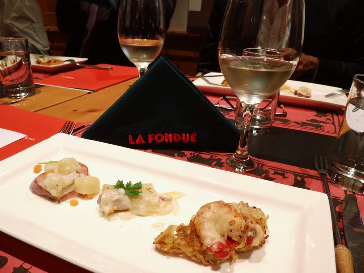 En el Restaurante La Fondue pueden encontrar diferentes opciones que ofrecen de fondue, Por ejemplo; el Tradicional, que tiene tres tipos de queso: emmental, gruyere y vacherin; con el toque especial que le da el kirsch (licor de cerezas). Luego el Bourguignonne, que incluye trozos de carne en una pequeña cazuela de fierro fundido para freírlos en pequeños trinches; la diferencia está en el carrusel de salsas (tártara, ajo y cebolla caramelizada), además de unos deliciosos encurtidos y la tradicional papas Rostí.