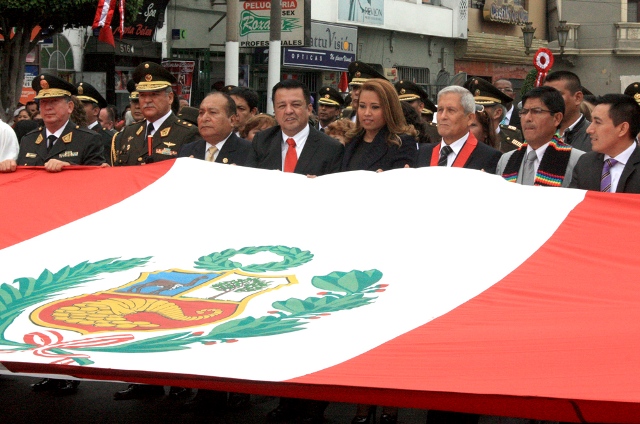 El paseo de la Bandera se inició a las 10:30 de la mañana, con el alcalde provincial del Callao, Juan Sotomayor y la Presidenta Regional, señorita Ana Victoria Bejarano Preciado; el Comandante General de la Aviación del Ejército, General de Brigada Germán José González Doimi, así como la Presidencia del Consejo Superior de Justicia, representantes del gobierno regional y de la Marina, Aviación, el Ejército y Policía Nacional.