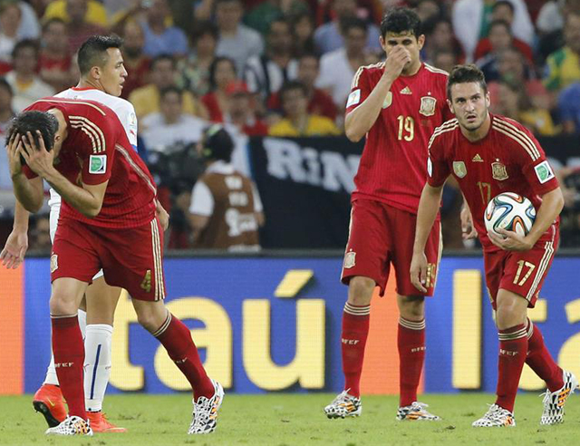 Rio de Janeiro, jun. 18. La selección española se convirtió en la gran decepción del Mundial Brasil 2014 al ser eliminada de la competencia por Chile, en la segunda fecha de la fase de grupos.