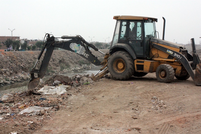 Con el apoyo de un cargador frontal y un tractor con palanca extendida, así como un volquete, una brigada de la Municipalidad del Callao eliminó hoy jueves 80 toneladas de basura y desmonte en la margen derecha de la ribera del río Rímac, donde se ubican 7 asentamientos humanos.
