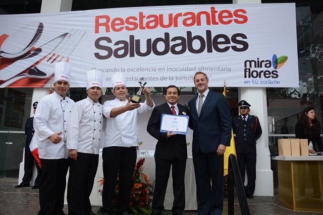 Miraflores, 27 de junio de 2014.- Con la finalidad de incentivar las buenas prácticas sanitarias en los restaurantes del distrito y proteger a los consumidores, la Municipalidad de Miraflores reconoció y certificó a 81 establecimientos que cumplieron satisfactoriamente con los requisitos sanitarios dispuestos por el Ministerio de Salud, en el marco del programa “Restaurantes Saludables”.