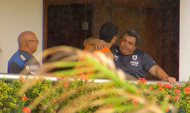 Natal, jun. 26. El delantero uruguayo Luis Suárez se despidió entre lágrimas de sus compañeros de selección y abandonó la concentración de Uruguay en Natal, Brasil.