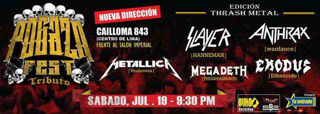 Eventos Morrison nos trae el Pogazo Fest edición “Thrash Metal”, contará en el cartel con las bandas más representativas de este género y con las mejores bandas tributo en el medio local: