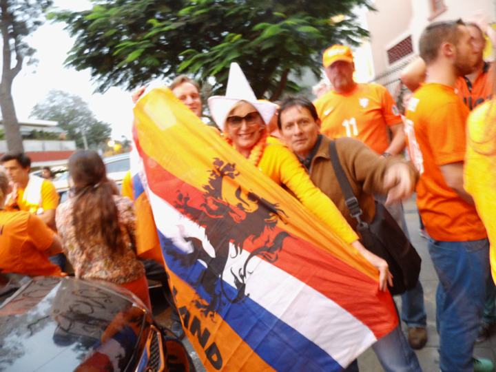 Hinchas de Holanda en el Barrio Holandés frente a Costa Rica
