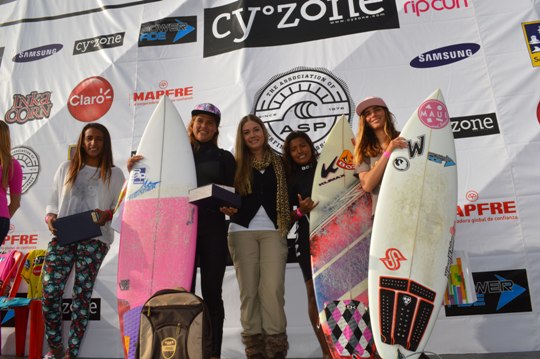ASP Junior vuelve a ser conquistado por peruanas. En esta ocasión, San Bartolo fue testigo del power surfing de las locales quienes vistieron el pódium de rojo y blanco. Miluska Tello venció a Melanie Giunta en una reñida final mientras que Belu Quispe y Vania Torres lograron el 3er lugar de la competencia.