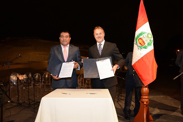 La suscripción del documento se realizó el 1 de julio en una ceremonia que se llevó a cabo en las instalaciones del complejo arqueológico, y que fue presidida por el alcalde de Miraflores, Jorge Muñoz Wells y el director ejecutivo del Plan Copesco Nacional, Jaime Valladolit Cienfuegos.