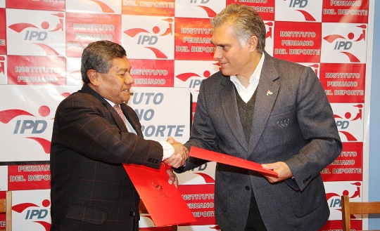 El presidente del Instituto Peruano del Deporte, Francisco Boza y el presidente del Gobierno Regional del Cusco, Mag. René Concha, firmaron el convenio para la construcción de un moderno Centro de Alto Rendimiento para los deportistas cusqueños.