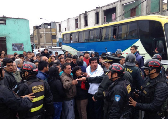 El bus, con más de una docena de transportistas, liderados por Enrique Baca, presidente de la Corporación de Transporte Urbano de Lima, llegó al cruce de Tacna con Virú y se instaló en ese lugar por alrededor de 20 inutos.
