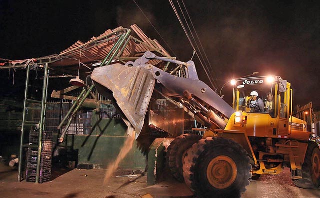 Para el retiro de los puestos de venta ambulatoria, se requirió el uso de maquinaria pesada como retroexcavadoras.