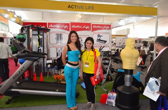 ACTIVE LIFE marca peruana estuvó presente en Expominas y Excon brindando información sobre su calidad en equipamiento de gimnasio con las maquinas GOLD GYM & ACTIVE LIFE , según nos cuenta la Sra. Veronica Durand, Gerente de la marca , en la foto las Srtas. Yas Namuche , Cecilia Minaya y Sandra Miyan.