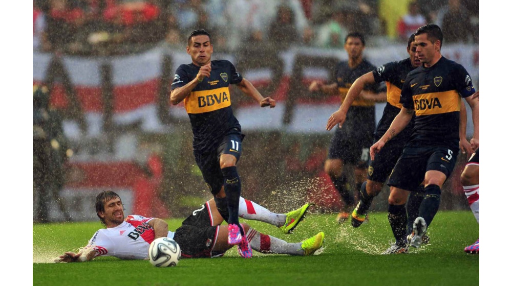 Fue 1-1 bajo un diluvio que complicó el juego. Magallán (PT 21m) y Pezzella (ST 33m) hicieron los goles. El Xeneize jugó 50 minutos con un hombre menos la injusta expulsión de Gago. También vio la roja Funes Mori y Mora erró un penal (PT 42m).