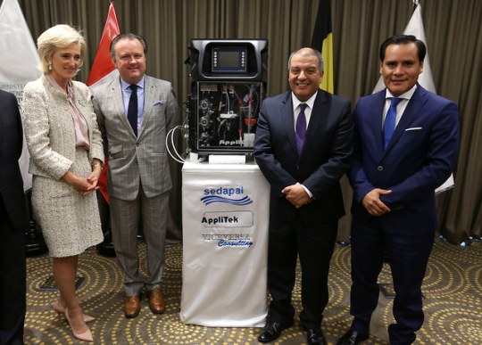 Luego, tanto el ministro Milton von Hesse como la Princesa Astrid participaron de la ceremonia de donación de un equipo analizador de aguas residuales por parte de la empresa Applitek a favor de Sedapal.