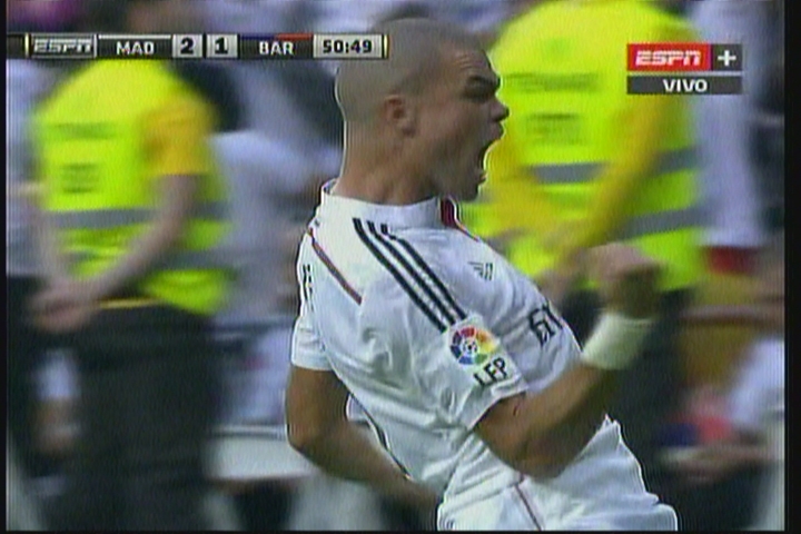 Gol del Real Madrid. Marca Pepe rematando de cabeza un lanzamiento de córner (2-1, min 50).