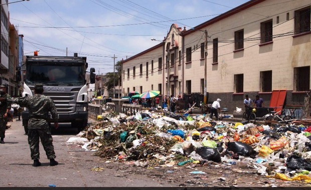 Tal como lo anunció anoche la jefa del Gabinete Ministerial, Ana Jara, las Fuerzas Armadas, en coordinación con otros sectores, apoyan en la recolección de los desechos en la capital de Lambayeque.