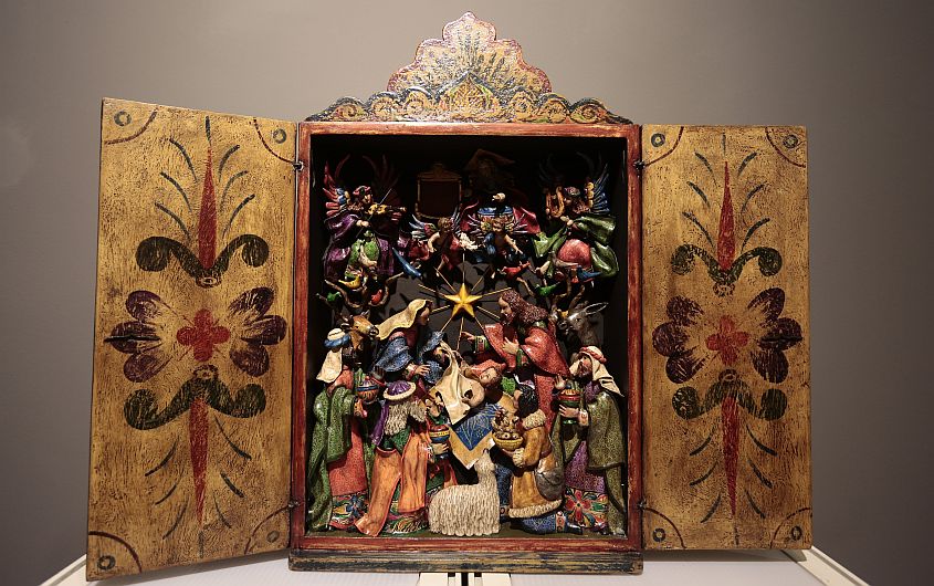 También llama la atención el mate burilado de la huancaína Kania Seguil, que ha tallado con punzón la historia del nacimiento de Jesús. La muestra va hasta el 4 de enero en la galería Pancho Fierro de Lima.