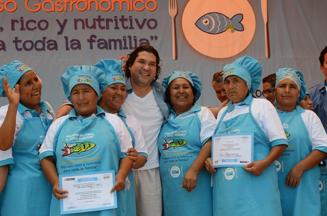 de diciembre de 2014.- El pastel de quinua con relleno de caballa del Comedor Popular Simón Bolívar de Arequipa obtuvo el primer puesto en el Concurso Gastronómico de Comedores Populares: Pescado, rico y nutritivo para toda la familia, organizado por el Programa Nacional “A Comer Pescado” del Ministerio de la Producción, evento que contó con la presencia del chef Gastón Acurio.