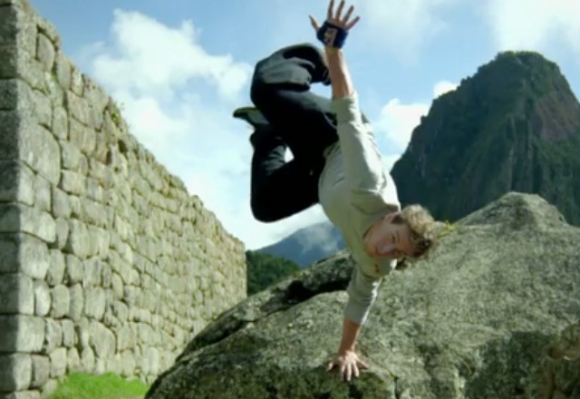 En la tercera parada en su viaje épico en busca de los más impresionantes lugares en el mundo, el famoso atleta de freerunning y parkour, el británico Ryan Doyle, visitó el Perú. El complejo arquitectónico de Machu Picchu fue el escenario perfecto para la practica de sus movimientos creativos.