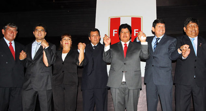 Con la presencia de los presidentes de las ligas departamentales y clubes de fútbol de primera y segunda división, Oviedo y toda su lista tomaron el mando del máximo ente del balompié peruano.