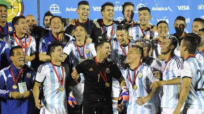 Argentina se coronó campeón del Campeonato Sudamericano Sub-20 de fútbol en Montevideo y se clasificó al Torneo Olímpico de Fútbol Río 2016 al vencer a Uruguay por 2-1, en el partido final del torneo.