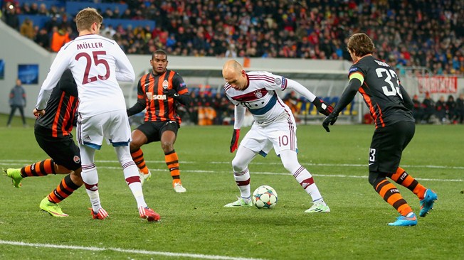 El partido tuvo un libreto claro desde el comienzo, con el Shakhtar cerrado atrás y el Bayern controlando el balón y haciéndolo circular para crear boquetes en la defensa contraria.