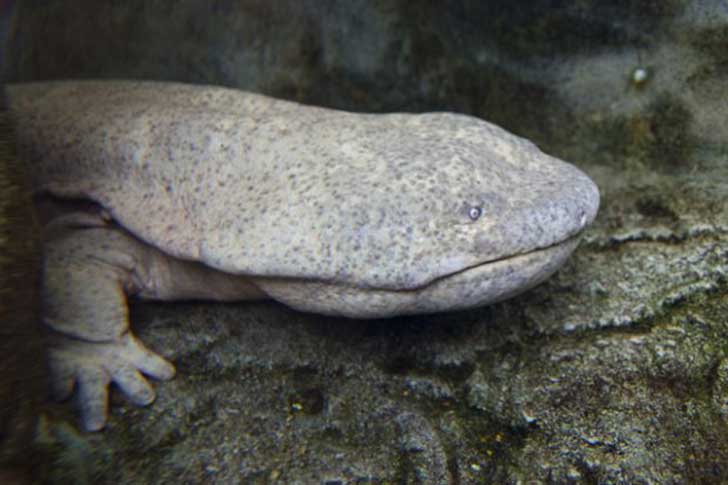 El anfibio más grande del mundo. La salamandra china gigante, vive en arroyos y lagos en áreas rocosas de China y Taiwán. Para hacerlas incluso más encantadoras, las salamandras chinas gigantes ladran, gimotean, hacen ruidos sibilantes y de llanto. Los chinos creen que el comer estas salamandras aumenta la virilidad masculina, así que no es sorprendente que estén en el Libro Rojo de las especies en peligro de extinción de ese país. Afortunadamente, han tomado medidas para ayudar a aumentar su población alreproducirlas en cautiverio.