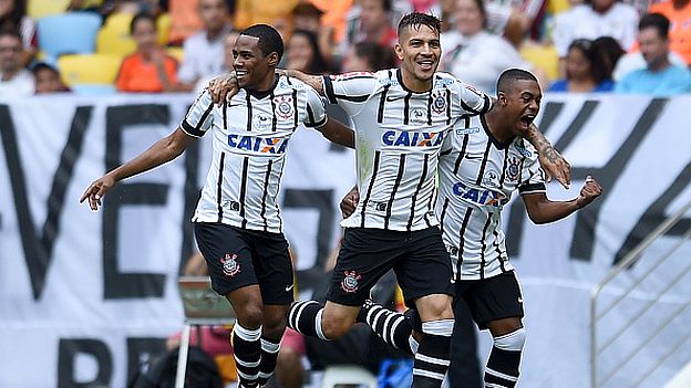 El primer gol de Corinthians llegó de la mano de Paolo Guerrero, quien cogió un rebote tras un remate desde fuera del área. El delantero formada en Alianza Lima solo tuvo que empujarla a merced, pues no había ningún defensa que lo marcase.