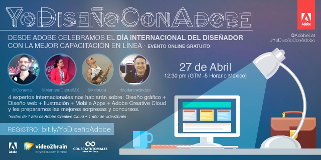 El próximo 27 de abril es el Día Internacional del Diseñador y Adobe lo sabe. Por eso, para reconocer y agradecer el talento de los diseñadores, ofrecerá el Webinar #YoDiseñoConAdobe, en el que reconocidos diseñadores compartirán con los internautas consejos para aprovechar al máximo Adobe Creative Cloud.