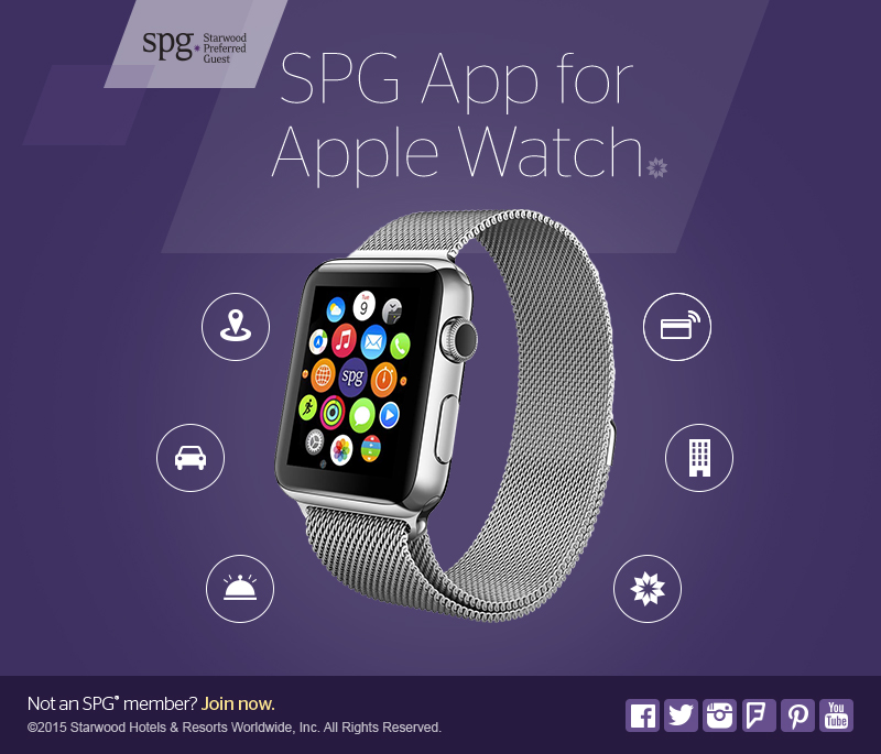 Apple Watch permite a los usuarios pedir autos con la aplicación Uber, registrarse en vuelos, hacer reservas para cenar y ahora, por primera vez, abrir la puerta de su habitación en un hotel, de manera instantánea. A partir de hoy, los socios de Starwood Preferred Guest® (SPG®), el galardonado programa de fidelidad de Starwood Hotels & Resorts Worldwide, Inc. cuentan con acceso inmediato a #spglife gracias a la aplicación SPG para Apple Watch.