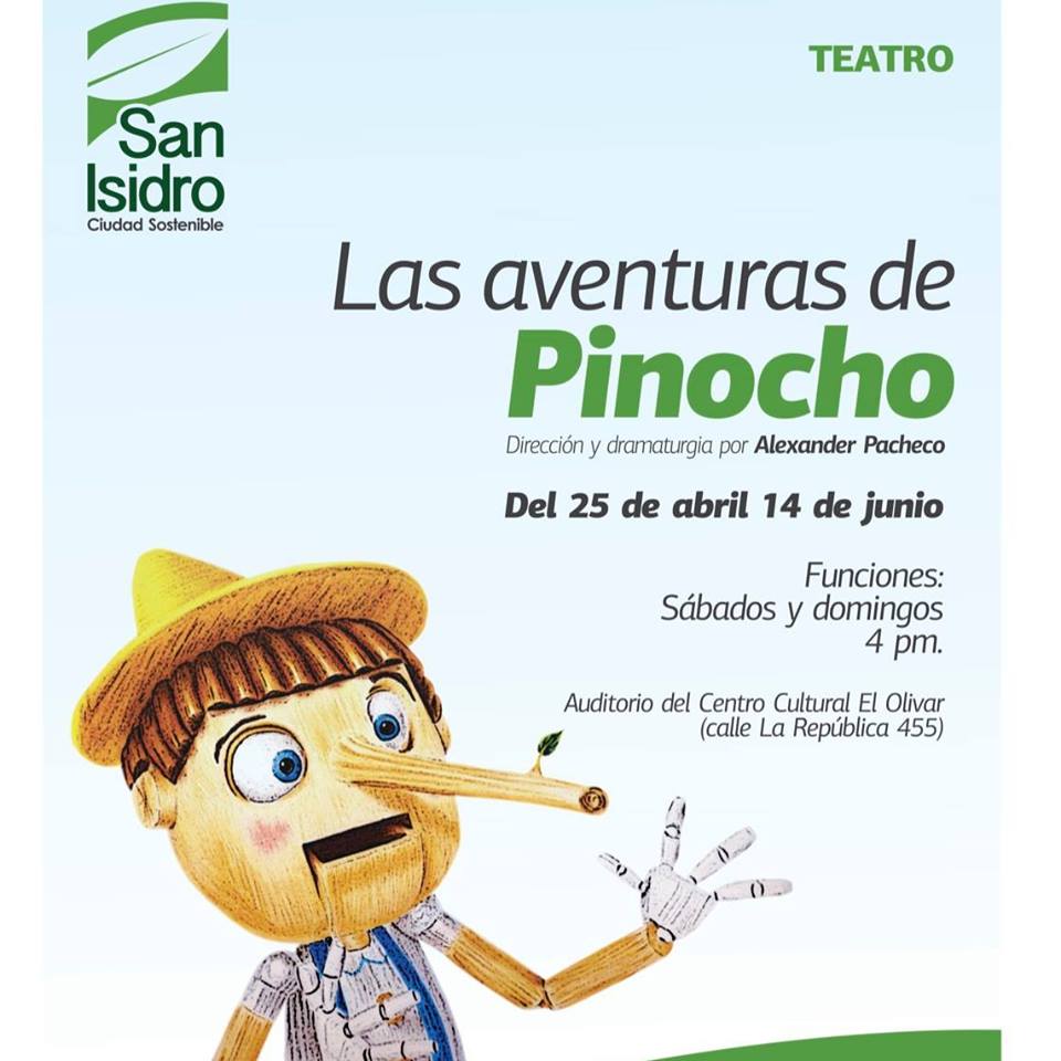 En la Municipalidad de San Isidro continuamos con las actividades para niños y niñas y este sábado estrenamos la obra infantil «Las aventuras dePinocho» a cargo de la Asociación Ayepotoma en el Auditorio del Centro Cultural El Olivar a las 4.00 pm.
