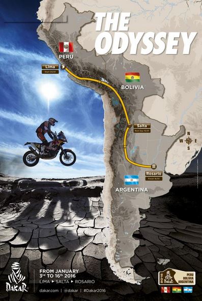 ★OFFICIAL 2016 DAKAR ROUTE★ Lima > Salta > Rosario – 3rd to 16th January 2016 #Dakar2016 pic.twitter.com/KZHSymUc87