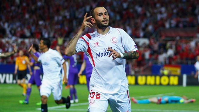 El atronador ambiente que se vivió en los prolegómenos del inicio en el Estadio Ramón Sánchez Pizjuán fue silenciado por la Fiorentina, que salió mandando con Joaquín, antiguo jugador del Real Betis Balompié, como guía. El de El Puerto de Santa María encontró a Mario Gomez en posición franca, pero el alemán mandó por arriba un disparo muy claro a los cinco minutos.
