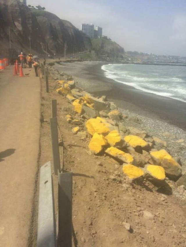 En la imagen se ve que las rocas fueron teñidas de amarillo, color característico del partido político del alcalde Luis Castañeda, Solidaridad Nacional.