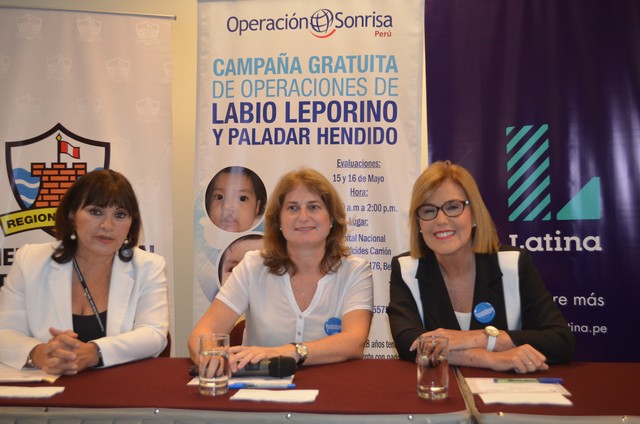 En la foto Maria Elena Aguilar del Águila, Directora del Hospital Daniel Alcides Carrión; Claudia Tudela, Directora Ejecutiva de Operación Sonrisa Perú; Mónica Delta, Periodista de Latina.
