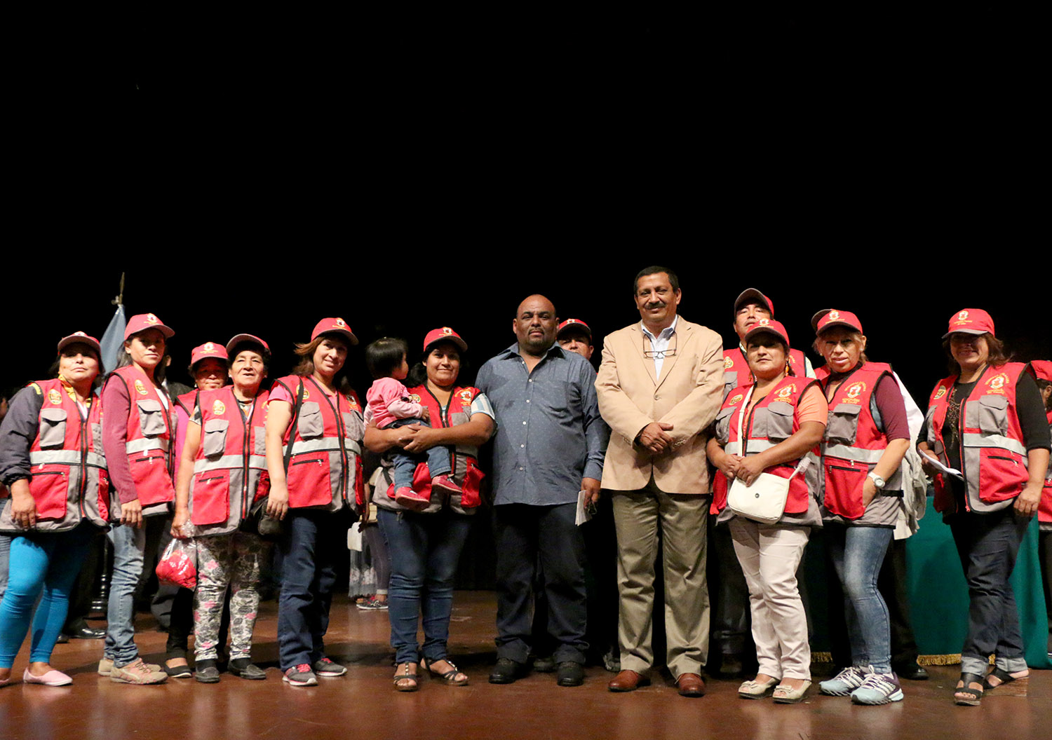 En la ceremonia, realizado en el Teatro Municipal “Alejandro Granda Relayza”, el Gerente General entregó a los directores y padres de familias presentes sus implementos que consiste en un chaleco, una paleta de Pare y Siga, un silbato y un gorro.